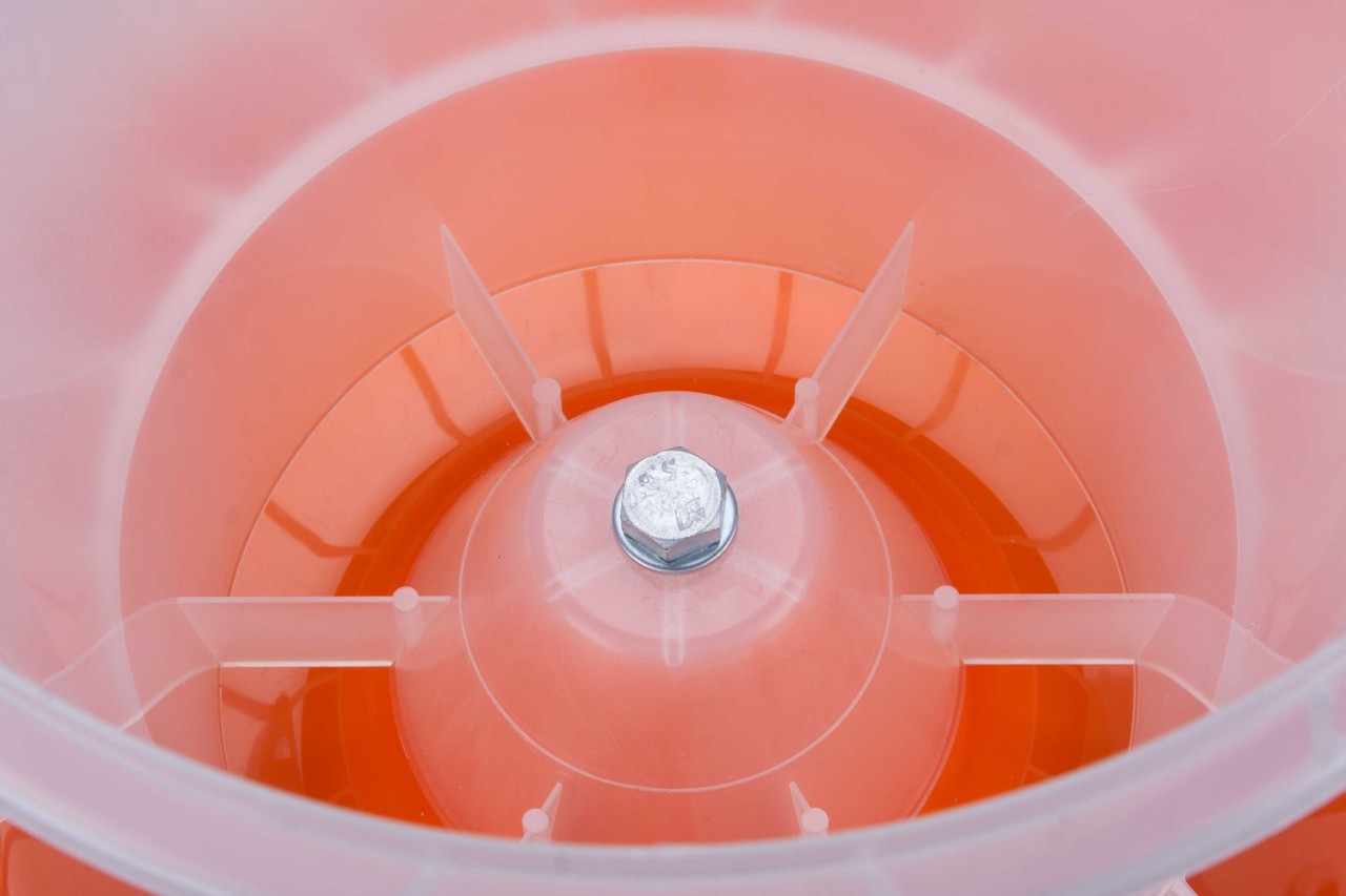 Изделие рассчитано на кормление птиц сухим кормом. Кормушку можно использовать для разных видов домашних птиц: кур, уток или бройлерных цыплят. Она выполнена из прочного высококачественного пищевого пластика. Благодаря этому кормушка не имеет токсичных запахов. Не имеет острых и режущих краев. У данного изделия есть крышка, которая защищает корм от грязи и влаги. На лоток надет разделительный ободок, он не дает птице залезать внутрь и раскидывать корм. У бункера есть удобная ручка для переноса и подвешивания.