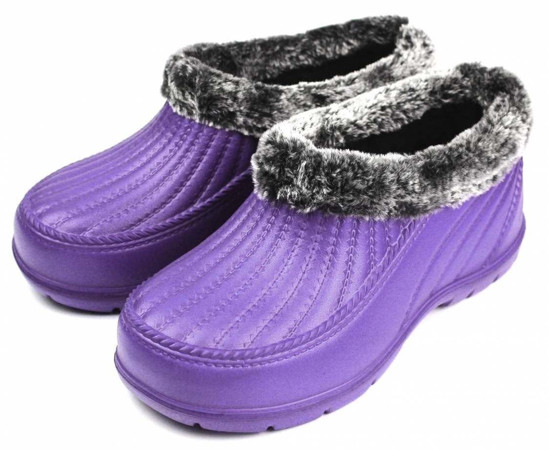 Галоши женские ЭВА с меховым чулком подходят для работы в саду и для прогулки по лесу. Водонепроницаемые, прочные, практичные, легкие и не требуют особого ухода. Утеплены по всей внутренней поверхности мягким велюром. Материал подошвы и верха обуви - ЭВА. Метод крепления подошвы литьевой, благодаря чему сабо прослужат долго.
