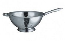 Дуршлаг нержавеющая сталь с ручкой на ножке d=22 см способен пропускать через себя большое количество воды за короткий промежуток времени, при этом отверстия достаточно маленькие, что не допустит выпадания продуктов. Из-за свойств материала отсутствует эффект прилипания продуктов, поэтому пользоваться таким дуршлагом одно удовольствие.