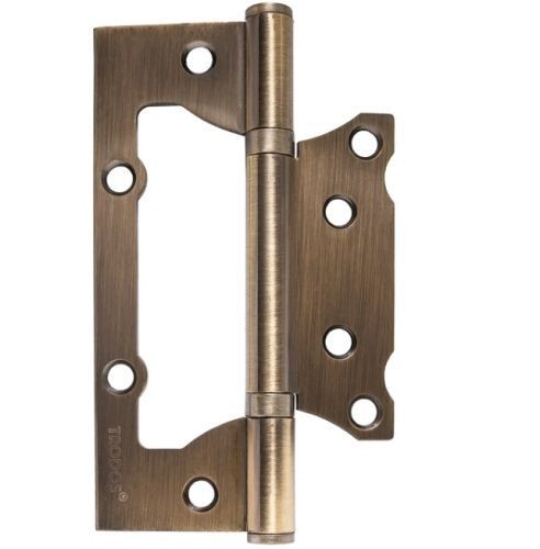 Петля 125*75*2.5мм без врезки универсальная используется для установки межкомнатных деревянных дверей, имеет неразборную конструкцию, которая является универсальной в плане направления открывания двери. Плотная подгонка шарнира позволяет избежать люфта, поэтому дверь точно не будет шататься. Для крепления понадобятся саморезы (в комплект не входят), при этом процесс установки в разы проще, чем с врезными петлями, ведь используя данное изделие вам не придется делать углубления под посадку.