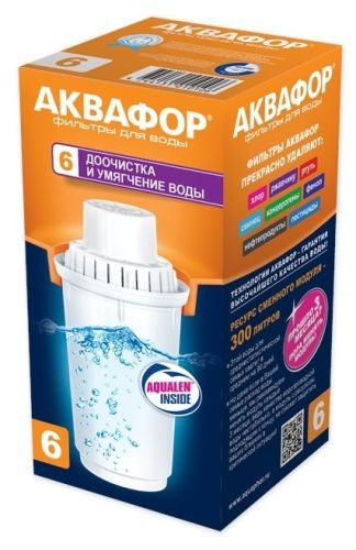 Картридж для фильтра "АКВАФОР-В100-6" умягчающий очищает водопроводную воду от вредных примесей и уменьшает образование накипи. Картридж используется в кувшинах Аквафор c круглым гнездом посадки для картриджа диаметром 7 см. С активированным углем, для очистки воды с жесткостью от 4 мэкв/л. Максимальная рабочая температуры + 40 С.