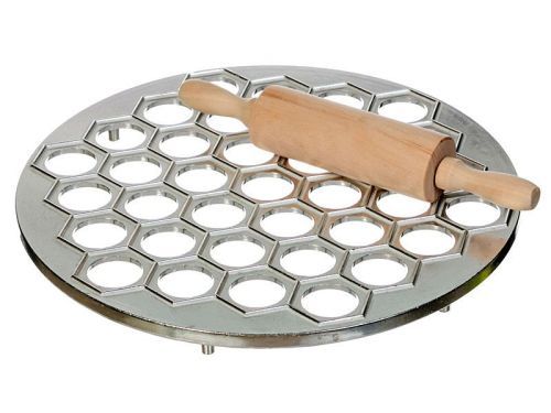 Пельменница металлическая Аврора облегчит и ускорит процесс приготовления пельменей: раскатанное тесто положите на форму, вложите в ячейки фарш, сверху накройте еще одним слоем теста. Затем раскатайте скалкой прямо по форме и вытряхните пельмени из ячеек.