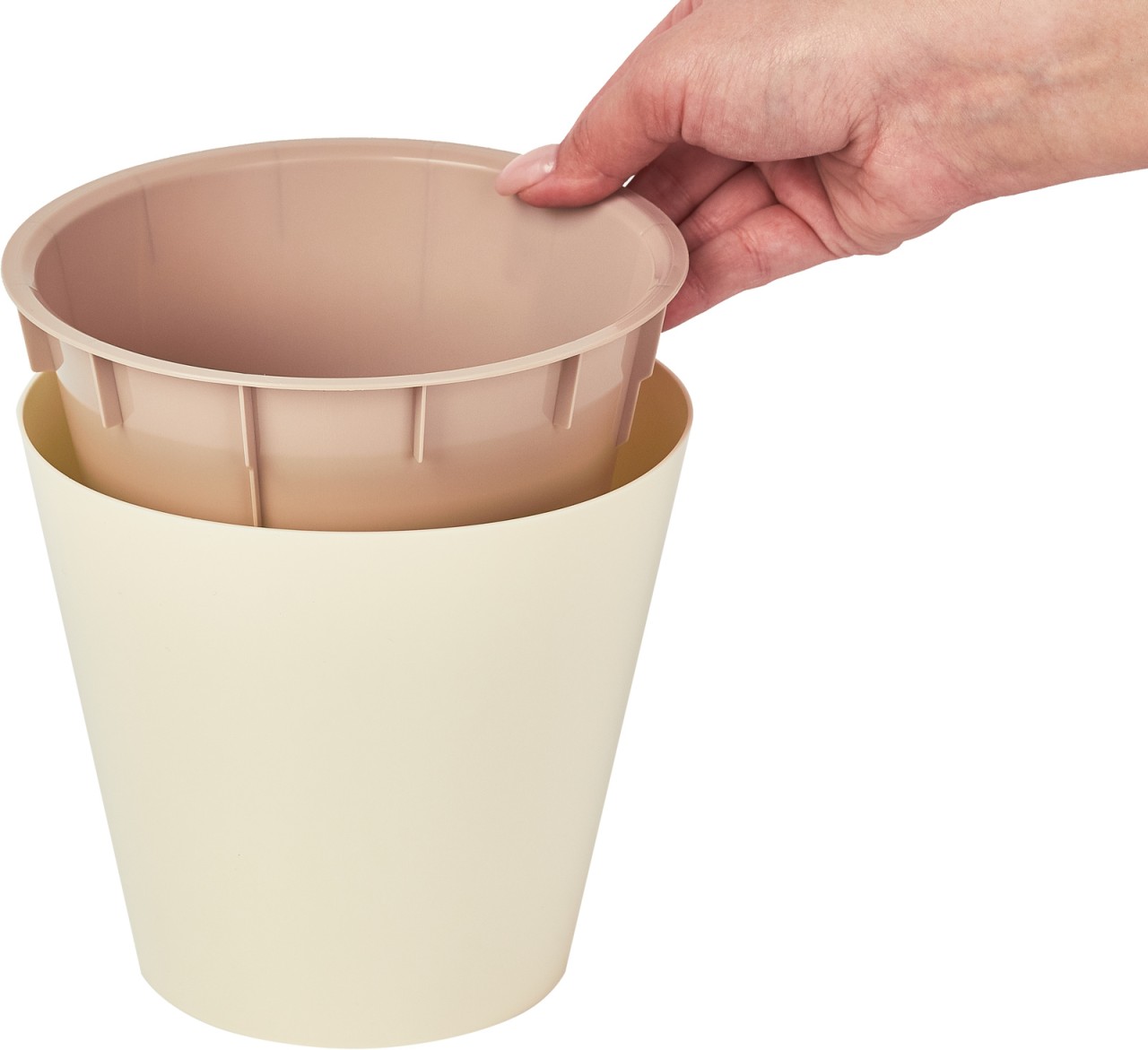 Кашпо для цветов 1,6л London Фиджи состоит из кашпо и технической вставки благодаря чему отсутствует необходимость в поддоне. Гладкие стенки внутренней вставки препятствуют прирастанию корней к стенкам горшка, облегчая пересадку. Воздух циркулирующий между внутренней вставкой и кашпо обеспечивает терморегуляцию корней, не давая им перегреваться на солнце.