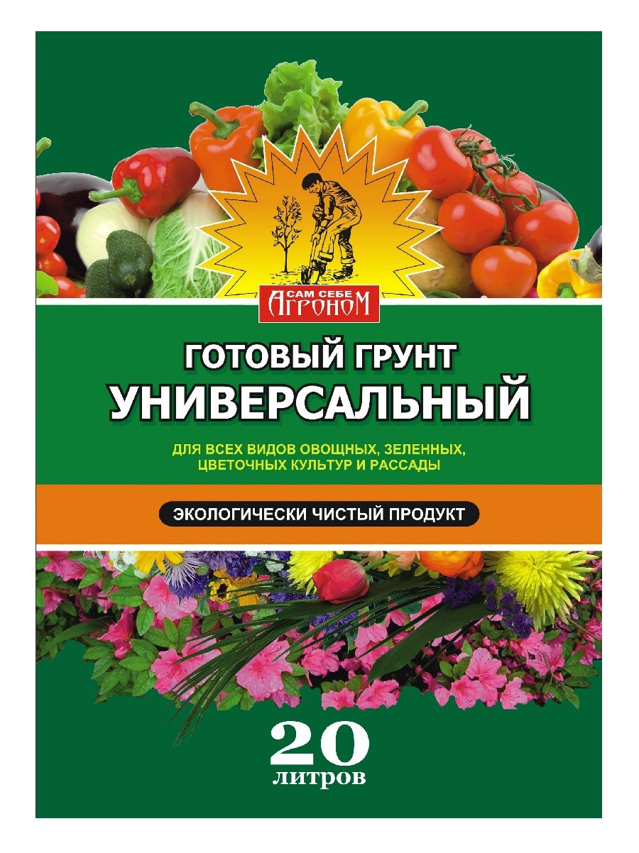 Грунт Агроном Универсальный 20 л используется для проращивания семян всех видов овощных, ягодных, цветочных и декоративных культур, для пикировки и выращивания рассады этих культур в условиях защищённого (домашних, тепличных) и открытого грунта; для выращивания всех видов плодовых, ягодных, овощных, цветочных и декоративных культур в различных климатических условиях, как в открытом, так и в защищённом грунте. Пригоден для выращивания газонных трав и травяных покрытий стадионов и спортивных площадок. Возможно применение в качестве подкормки и мульчирующего материала.