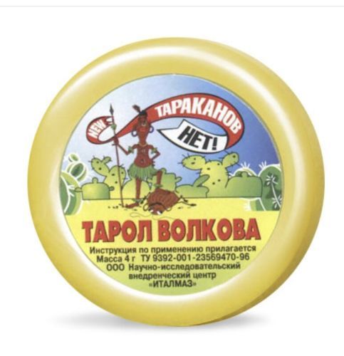 Препарат нового поколения, обеспечивающий 100% эффект против тараканов и совершенно безопасный для человека и животных. Одной баночки хватает на 40м2. Способ применения: аккуратно откройте баночку, разложите препарат небольшими порциями по площади квартиры или другой территории. Обработка будет эффективнее, когда вы разложите Тарол по основным местам обитания тараканов: 1. Во всех шкафах. 2. Под раковиной. 3. На антресолях. 4. За холодильником. 5. За компьютерами. Раскладывать Тарол можно на поверхность мебели или на пол. Можно класть частички средства от тараканов в небольшие пластиковые емкости, хорошо подойдут половинки от самой баночки. Не рекомендуется класть его на бумагу, ткань или картон, иначе он быстро высохнет, и обработка будет менее эффективна. Тарол Волкова обладает многими достоинствами: Эффективность средства достигает 100%; Не обладает неприятным запахом; Не выделяет вредные испарения; Имеет плотную структуру, не пылит; Не вызывает привыкания у тараканов. Срок действия разложенного средства достигает 3 лет с момента нанесени
