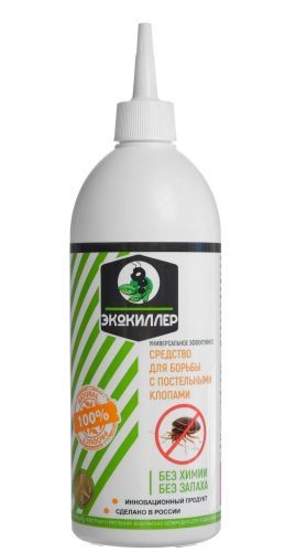 Средство от постельных клопов 150мл "Экокиллер" Безопасный натуральный инсектицидный продукт на основе диатомита. Эффективен в борьбе с тараканами, двухвостками, клопами, муравьями, колорадским жуком, улитками, клещами, блохами. Вредители не могут выработать устойчивость к диатомиту (гибель насекомого из-за механического повреждения). Попадая на внешние покровы тела насекомого, частицы Экокиллера буквально сцарапывают защитный восковой слой кутикулы превращая его в своего рода молекулярное сито, жидкость испаряется из мягких тканей организма насекомого и оно погибает. (эффект Цахера) Не вызывает аллергических реакций и отравления (нейтральное природное вещество) Не требуется изоляция помещения (не имеет запаха, отсутствует токсичность) Срок годности НЕ ограничен. Для дома – борьба с тараканами, клопами. Для животных – борьба с блохами, клещами. Для сада, огорода, дачи – против муравьев, слизней, проволочника, белокрылки и др. Препарат особенно актуален для тех, у кого есть маленькие дети и животные