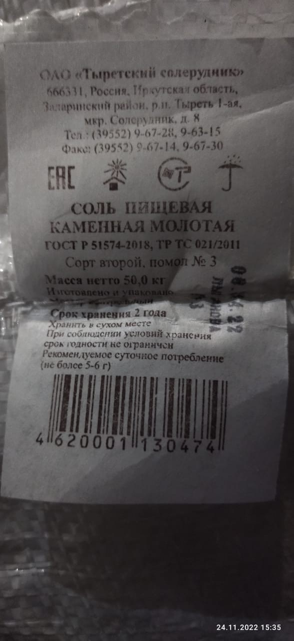 Соль пищевая каменная молотая второго помола подходит для обработки дорог в зимний период