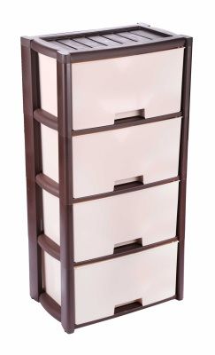 Комод пластиковый Альтернатива Колорит бежевый 4-х секционный станет отличным решением для организации хранения практически в любой комнате вашей квартиры или дома. Цельная конструкция перегородок гарантирует повышенную прочность. Комод имеет выдвижные и достаточно вместительные ящики. На крышке и перегородках предусмотрены ограничители. Контрастное сочетание цвета беж и венге и классические прямоугольные формы помогут оживить и дополнить ваш интерьер. Благодаря небольшому весу и компактному размеру, комод легко передвинуть. Поставляется в собранном виде в индивидуальной упаковке.