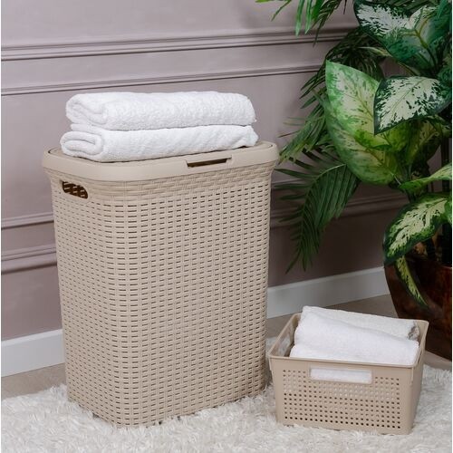 Корзина для белья 40л Ротанг латте VIOLET Емкость для накопления грязного белья перед стиркой. В объеме 40л комфортна для индивидуального использования или при раздельном накоплении белья несколькими людьми (например, при отдельном накоплении белья родителей и детей или при совместном проживании друзей и коллег в квартирах или общежитиях). Крышка закроет содержимое от взглядов и послужит препятствием для распространения возможных посторонних запахов. Текстура с имитацией натурального плетения «Ротанг» привнесет уют в ваш интерьер и придаст индивидуальность.