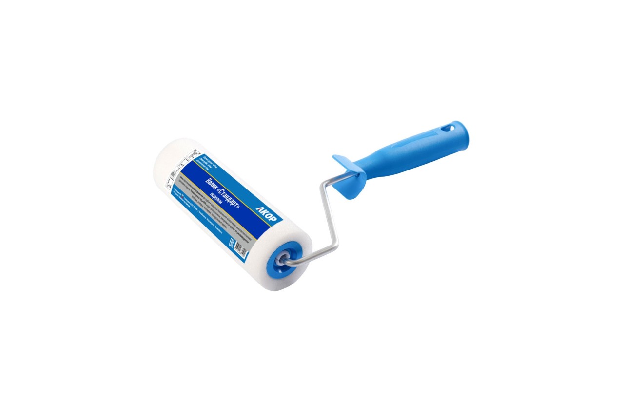 Валик АКОР поролоновый 100 мм подходит для красок на водной основе и водно-клеевых составов, используемых для грунтовки и поклейки обоев. Поролоновые валики стоят дешевле остальных, но и менять их нужно чаще – шубка быстро изнашивается. Поролон боится лакокрасочных материалов, в состав которых входит ацетон. При воздействии разрушающих компонентов поролон набухает, деформируется и практически растворяется. Кроме того, поролоновый валик создает брызги при быстрой работе.