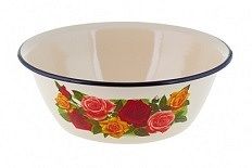 Миска Керченский МК с декором эмалированная сталь 4 л произведена из качественной стали, покрытой эмалью, которая специально разработана для пищевых емкостей и обладает инертными свойствами: не окисляется, не теряет микрочастицы, не вступает в химические процессы с продуктами даже в кислой среде. В такой посуде удобно хранить готовые блюда или различные нарезки, но ее нельзя использовать в микроволновках.