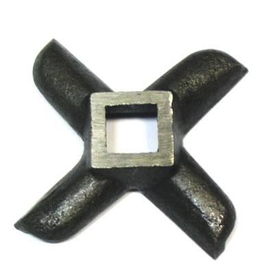 Нож для мясорубки крест с классической формой лезвий и заточки качественно выполняет свою функцию и превращает продукты в фарш. По типу крепления подходит для большинства мясорубок отечественного производства.