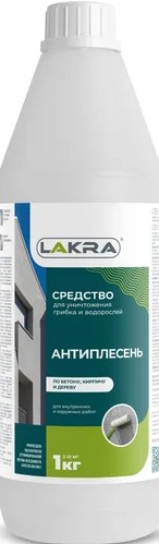 Антиплесень Лакра Здоровый дом 1,0 кг - средство для уничтожения плесени, грибка, водорослей, синевы Высокоэффективное средство для уничтожения и профилактики возникновения плесени, грибка, синевы и большинства видов бактерий на бетонных, кирпичных, деревянных и любых других поверхностях, обладающих впитывающей способностью. Для влажных помещений и наружных работ на обработанные средством поверхности необходимо нанести сверху финишное покрытие различными видами ЛКМ, обеспечивающими защиту подложки от попадания воды. Область применения: Для наружных и внутренних работ в жилых помещениях и помещениях с повышенной влажностью: ванные комнаты, подвалы, погреба, парники и т.п., а также в качестве добавки к меловым, гипсовым и цементным растворам. Подходит к нанесению на деревянные, древесно-стру