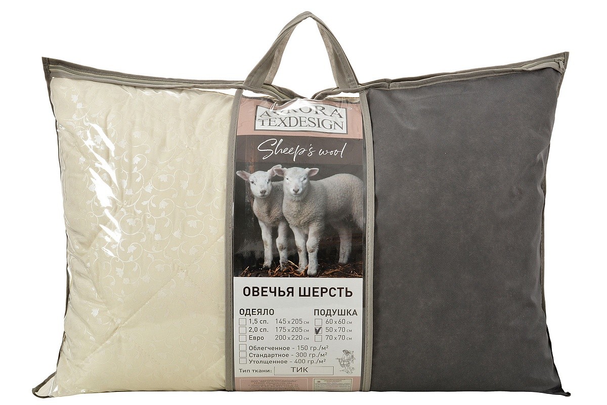 Подушка 70*70 Овечья шерсть. В качестве наполнителя используется полиэфирное волокно — мягкий и одновременно упругий материал, который делает подушку объёмной и удобной