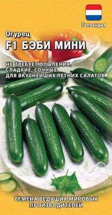 Среднеранний (плодоносит через 51 день после появления всходов) партенокарпический (не требует опыления) очень урожайный гибрид корнишонного типа для выращивания под временными пленочными укрытиями и в открытом грунте. Растение женского типа цветения, в каждом узле закладывает по 1-3 корнишона. Плоды короткие, цилиндрические, темно-зеленые, гладкие, длиной 8-10 см, массой 160 г, не перерастают. Гладкие огурцы благодаря нежной тонкой кожице, сладкой сочной мякоти и сильному огуречному аромату незаменимы для салатов и превосходят по вкусовым качествам своих пупырчатых сородичей. Гибрид устойчив к основным заболеваниям огурцов и неблагоприятным условиям выращивания. Урожайность 16,4 кг/м?.