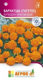 Однолетник. Серия «Купидон» – компактные обильноцветущие растения с яркими соцветиями (диаметром 6-7 см) станут великолепным украшением любой цветочной композиции. Стебли направлены вверх, образуют плотный кустик. Оригинальная форма хризантемовидных соцветий (внутренние цветки образуют возвышающийся густомахровый «хохолок», с оборкой из язычковых лепестков). Бархатцы неприхотливые, быстрорастущие, засухоустойчивые и светолюбивые растения, но выносят небольшое затенение, поэтому ими можно оформлять участки с северной стороны строений. Зацветают через 2-2,5 месяца после посева и цветут до заморозков. Семена на рассаду высевают в начале апреля, но для более раннего цветения их можно посеять в марте. В открытый грунт можно посеять в мае. При температуре 16-18 °С всходы появляются через 10 14 дней. В грунт рассаду высаживают, когда минует угроза заморозков. Бархатцы гармонично выглядят в любых цветниках. Их можно использовать в контейнерах и корзинах, высаживать в балконные ящики. Хорошо и долго стоят в срезке. Кроме того, бархатцы оказывают санитарное воздействие на почву.