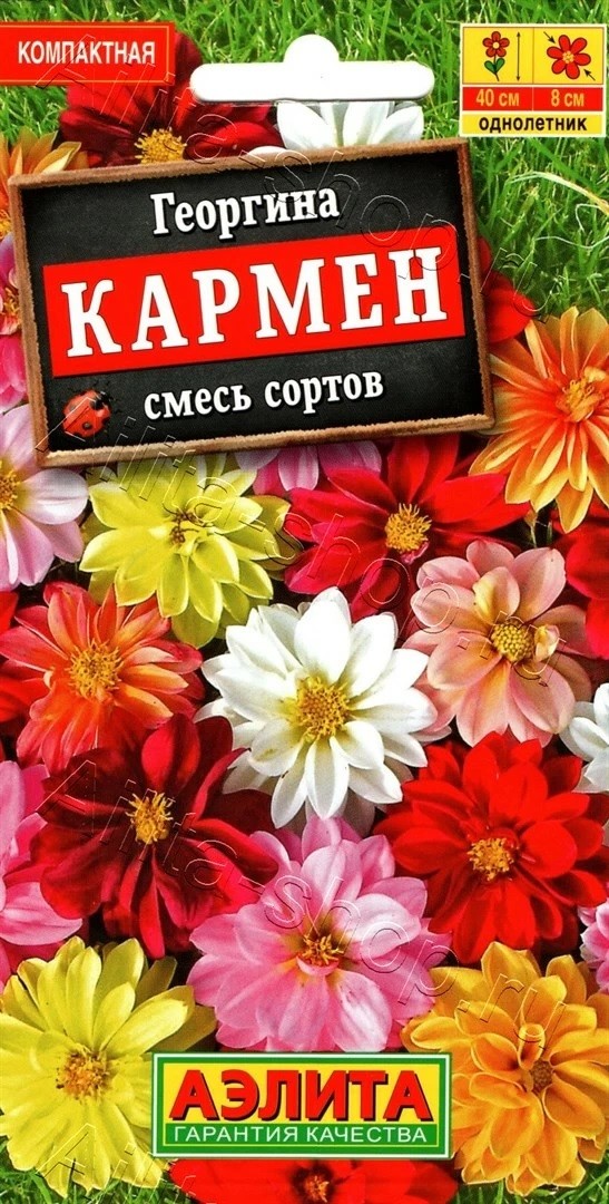 Однолетник. Обильноцветущая георгина с полумахровыми соцветиями насыщенных тонов. Кусты компактные, высотой до 40 см, крепкие, хорошо разветвленные. Соцветия-корзинки 6-8 см. Одновременно распускается 10-15 шт. на каждом растении. Цветение продолжительное, с июля до первых заморозков. Растения тепло- и светолюбивые, не любят переувлажненных почв. Отлично растут в контейнерах, украсят клумбы, рабатки, бордюры. Подходят для срезки. Посев. Выращивают рассадным способом с пикировкой сеянцев в фазе двух настоящих листьев. Рассаду высаживают в открытый грунт, когда минует угроза заморозков. Георгина хорошо развивается на солнечных участках с плодородными почвами. Растениям необходимы регулярные поливы, прополки, рыхления и подкормки.
