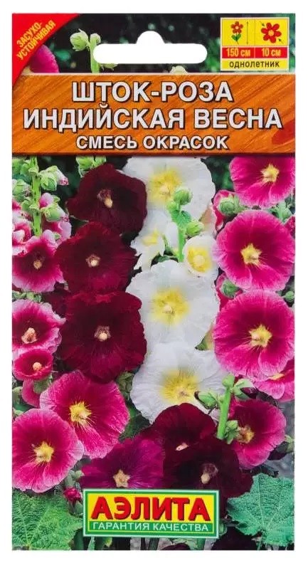 Семена Шток -роза мальва Индийская весна 0,3 Аэлита Яркая, крупноцветковая смесь популярного садового растения. Кусты мощные, ветвистые от основания, высотой 130-150 см. Цветки ширококолокольчатые, O9-11 см, собраны в длинные кистевидные соцветия, состоящие из нескольких десятков цветков. Цветение раннее и продолжительное, с июля до окончания сезона. Растения неприхотливые, светолюбивые, засухоустойчивые. Используются на заднем плане цветников, вдоль заборов и стен домов. Хорошо подходят для срезки, в воде распускаются все бутоны. Отличные медоносы. Посев в открытый грунт на постоянное место в середине мая, в лунки по 2-3 шт. Всходы появляются через 2 недели, их прореживают, оставляя по 1 растению в лунке.