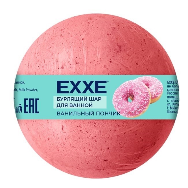 Бурлящий шар для ванной EXXE "Ванильный пончик" сделает процесс принятия ванны более приятным и расслабляющим. Способ применения: Растворить шарик в теплой воде в ванной. После принятия ванны ополоснуться водой.