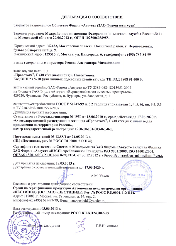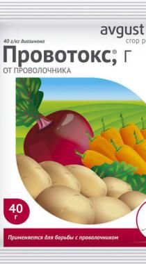 Средство провотокс Август высокоэффективный препарат от проволочника на картофеле 120 г. Преимущества: обладает контактно-кишечным механизмом действия; характеризуется длительным периодом защитного действия; уничтожает личинок проволочника и снижает число поврежденных клубней; не вызывает привыкания; не токсичен для растений в рекомендуемых нормах расхода. Действующее вещество: 40 г/кг диазинона. Способ применения: препарат раскладывается в лунки (на расстоянии 3-5 см от клубней) во время высадки картофеля. Раскладку препарата осуществлять утром (до 10:00) или вечером (после 18:00) в безветренную погоду при температуре не более 25 С.