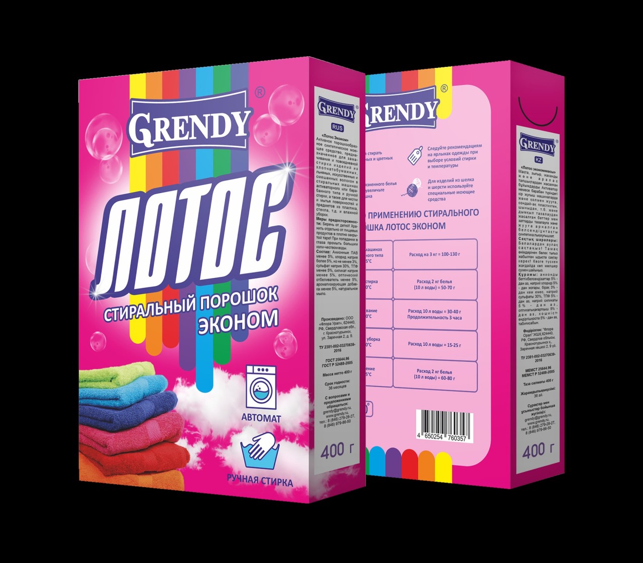 Стиральные порошки GRENDY предназначены для замачивания и повседневной стирки изделий из хлопчатобумажных, льняных, искусственных и смешанных волокон в стиральных машинах активаторного или барабанного типа и ручной стирки, а также для чистки и мытья поверхностей и предметов из пластика, стекла, т.д. и влажной уборки.