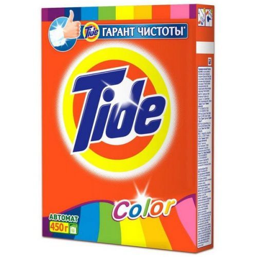 Стиральный порошок Тайд АВТОМАТ 450гр КОЛОР содержит 5-15% анионные ПАВ; менее 5% неионогенные ПАВ, отбеливающие вещества на основе кислорода, фосфонаты, поликарбоксилаты, цеолиты; энзимы, оптические отбеливатели, ароматизирующие добавки, гексилкоричный альдегид для использования в стиральных машинах любого типа. Для стирки белья взрослых и детей.