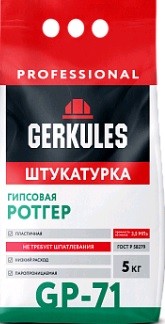 Штукатурная смесь Ротгер Геркулес 5кг GP-71 Профессиональная сухая штукатурная смесь применяется для оштукатуривания стен и потолков внутри помещений с нормальной влажностью. Отличается хорошей удобонаносимостью, не сползает с поверхности, легко разравнивается. Использование штукатурной смеси позволяет получить гладкую поверхность, обладающую необходимой прочностью и высоким сцеплением с основанием.