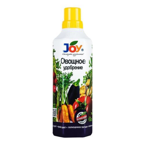 Удобрение JOY для подкормки овощных культур 1000 мл для культур: картофель, капуста, томаты, огурцы, кабачки, перцы, баклажаны, корнеплоды. Действующее вещество: лигногумат Специализированное удобрение с высоким содержанием гуминовых и фульвовых кислот. Имеет в составе необходимые микроэлементы: железо, марганец, медь, цинк, молибден, бор и др. Снижает стрессы растений при пересадке, при обработке пестицидами, при колебаниях температур. Повышает урожайность до 30%, ускоряет рост и развитие растений. Сохраняет и улучшает плодородие почвы.