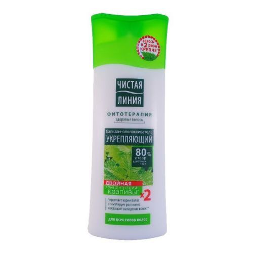 Бальзам-ополаскиватель Чистая линия "Крапива" 230 мл. Укрепляющий бальзам-ополаскиватель на отваре целебных трав с физиотерапевтической формулой двойного действия обладает несколькими свойствами: укрепление волос - экстракт крапивы в двойной концентрации превосходно укрепляет корни волос и стимулирует их рост; препятствует выпадению волос.