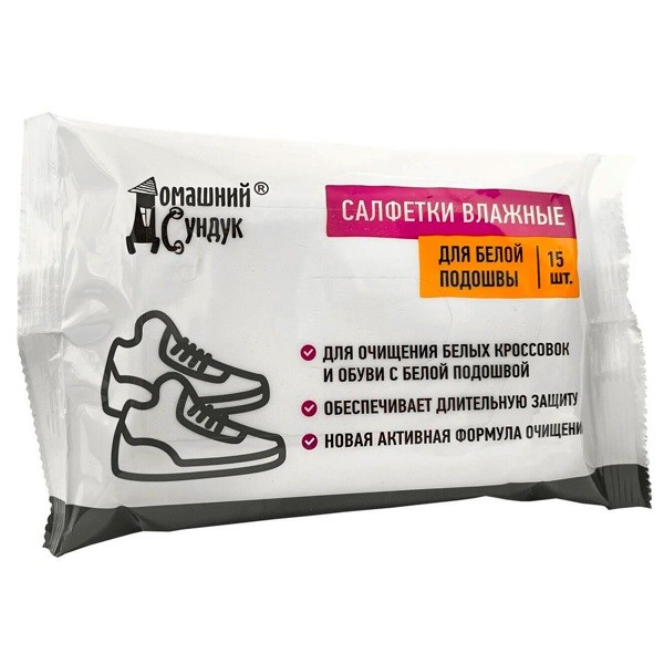 Салфетки влажные для обуви с белой подошвой 15шт Салфетки влажные для обуви с белой подошвой имеют в составе специально разработанный раствор, благодаря которому вы сможете быстро и эффективно удалить загрязнения. Подходит также для других изделий из кожи (сумок, перчаток и пр.).
