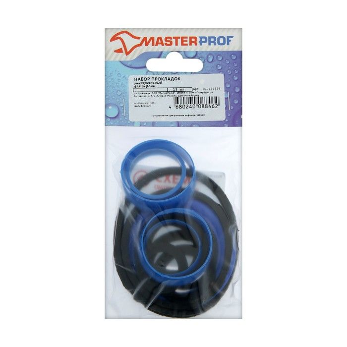 Прокладки MasterPro для сифона, универсальные. Данный набор прокладок предназначен для ремонта уплотнителей сифона. Прокладки изготовлены из резины, благодаря чему имеют ряд преимуществ: обладают несущественным поглощением жидкости, а также повышенной устойчивостью к износу, непроводимостью электрической энергии и стойкостью к истиранию. Состав набора: Гайка для сифона G1 1/2 - 1шт, Гайка для пластмассого выпуска (упр44*3) 1 шт, Уплотнильное кольцо (конусная прокладка) ПВХ внутр. диаметр 40мм - 2шт, Уплотнильное кольцо (удлиненный бортпрокладка) ПВХ внутр. диаметр 40мм - 2шт, Уневерсальная прокладка для нержавеющей чашки 1 шт, уневерсальная прокладка для сифона 1 шт.