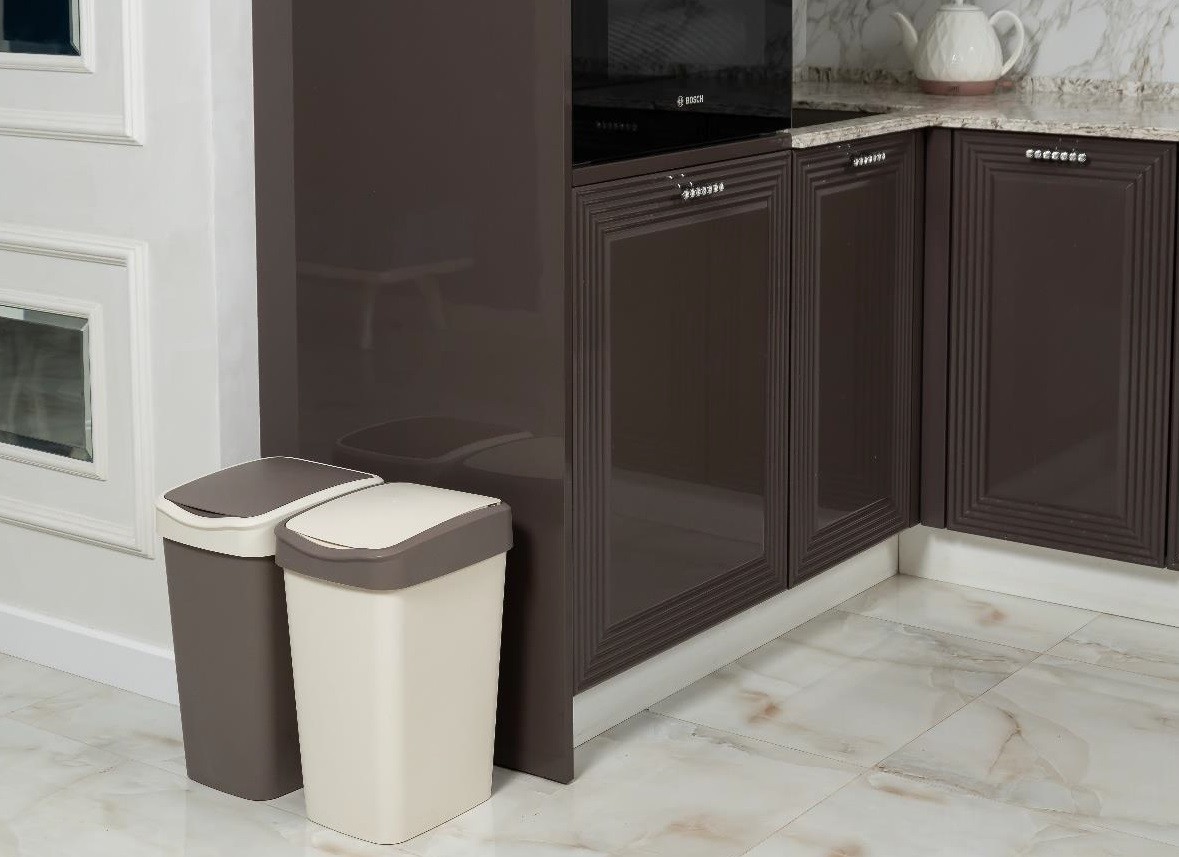 Ведро для мусора 20л Tandem с подвижной крышкой шоколад/слоновая кость VIOLET изготовлено из экологически чистого полипропилена, не токсично, не имеет запаха, не содержит Бисфенол А, безопасно. Ведро отлично подойдет для использования на кухне, в ванной комнате, а также офисах, медицинских учреждениях и школах, на предприятиях общественного питания и в магазинах. Подвижная крышка удобна в применении и поможет скрыть содержимое, защитит от распространения запаха.