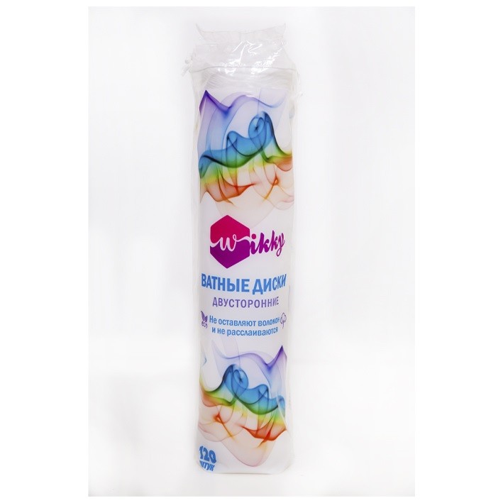 Ватные диски 120шт Wikky Двусторонние ватные диски производятся из натурального 100% хлопка. Не содержат примесей синтетических волокон и не расслаиваются. Обладают мягкой и нежной структурой, а также максимальным впитывающим и очищающим эффектом.