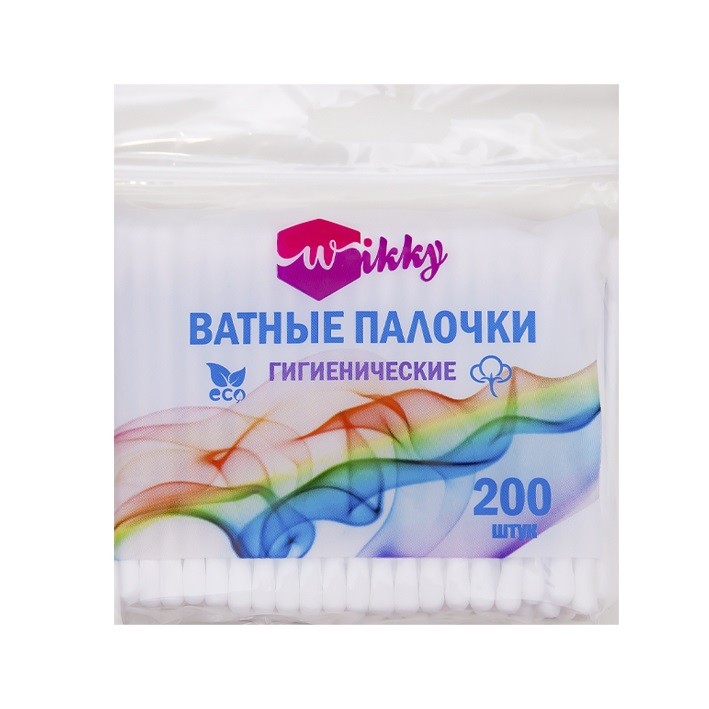 Ватные палочки 200шт пакет Wikky Ватные палочки производятся из натурального 100% хлопка, специальная плотно намотанная подушечка на плотный пластиковый стик , позволят использовать палочку в гигиеничных и косметических целях, при использовании не оставляет ворсинок. Они очень удобны в гигиенических и косметических целях, а так же незаменимы при нанесении и снятии макияжа.