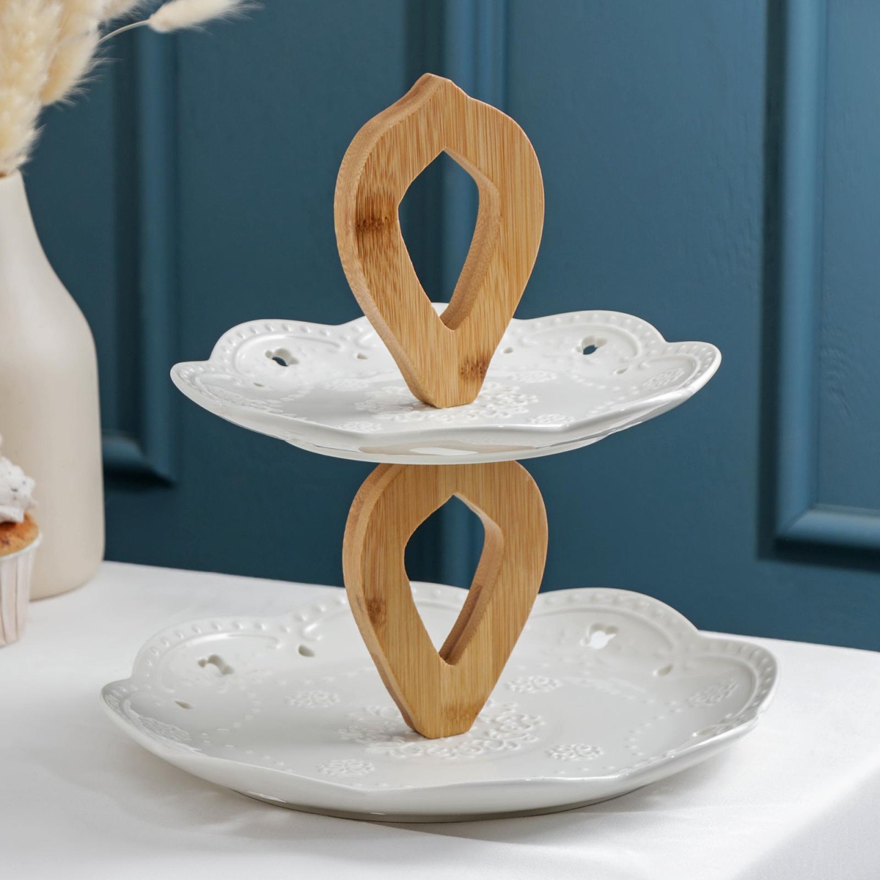 Ваза для фруктов выполненное из керамики высокого качества, сочетает в себе лаконичный дизайн с максимальной функциональностью. Состоит из 2-х ярусов разного размера и предназначено для красивой сервировки конфет, фруктов и десертов. Изделие украсит сервировку вашего стола и подчеркнет прекрасный вкус хозяина, а также станет отличным подарком.