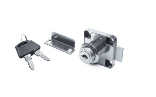 Замок мебельный накладной с планкой 22 мм устанавливается на выдвижные ящики и различные шкафчики для обеспечения сохранности содержимого. Имеет ключевой доступ с поворотным принципом запирания замка (не срабатывает автоматически при захлопывании дверцы). В комплекте с замком идут ключи 2 шт. и ответная планка для установки на корпусе шкафчика или ящика.