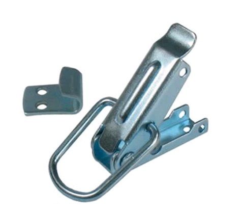 Замок тарный Кунгур с ответной планкой оцинкованный 130 мм используется для ящиков, а также для теплоизоляции, для стягивания частей вентиляционных систем (крышки фильтры-боксы, быстросъемные стяжки и т.д.). Принцип действия замка предполагает подвижность одной из частей, на которую установлены элементы замка - это может быть как часть с ответной планкой, так и часть с самим замком, в ином случае данный замок не сработает т.к. имеет рычажный принцип действия.