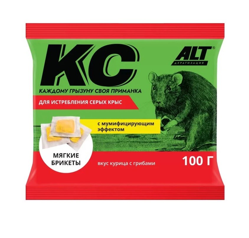 Отрава брикет от грызунов 100гр вкус курица с грибами КС Для гибели серой крысе достаточно однократного поедания тесто-сырного брикета. В состав мягких брикетов, помимо действующего вещества, входят как привлекатели свежее тесто с сыром, подсолнечное масло и ваниль, каждый брикет отдельно завернут в съедобную рисовую бумагу – это обеспечивает исключительную привлекательность и 100 % поедаемость приманки крысами, а содержащиеся в составе добавки, отпугивающие животных – уменьшают вероятность потребления приманки нецелевыми животными. Постепенное развитие симптомов отравления не вызывает у крыс настороженного отношения к брикетам, что позволяет предотвратить избегания приманки грызунами. Подходит для земляных собачек.