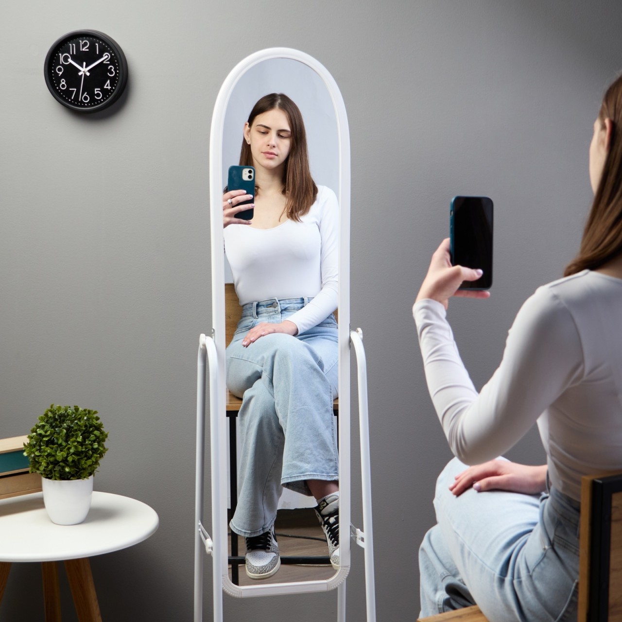 Напольное зеркало в полный рост - практичная деталь любого интерьера, которая выполнят сразу несколько функций. Интерьерное зеркало позволяет увидеть себя во весь рост. Вы всегда сможете оценить, как на вас сидит кофточка с джинсами или платье с новыми туфлями. Зеркальное полотно создает домашний уют: в комнате увеличивается количество естественного и искусственного света за счет отражения. Декоративное зеркало делает помещение визуально больше, заполняет пустоту, служит минималистичным украшением интерьера. Однотонная рама гармонично вписывается в любой дизайн.